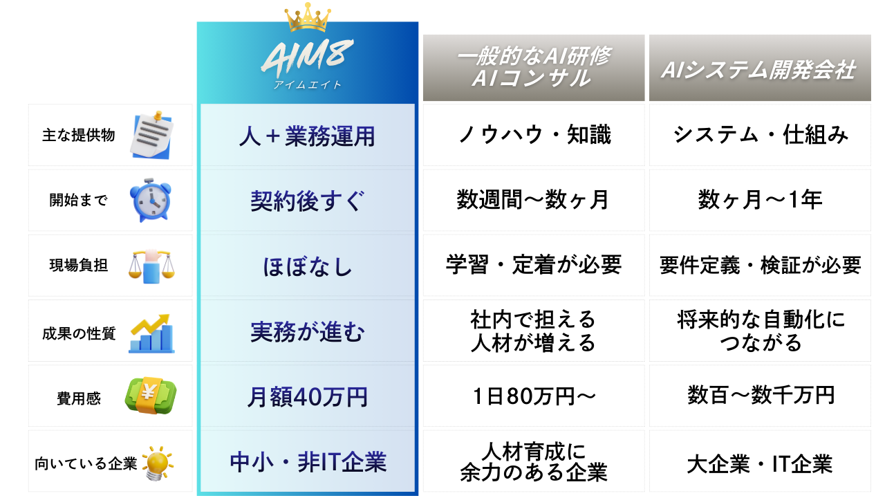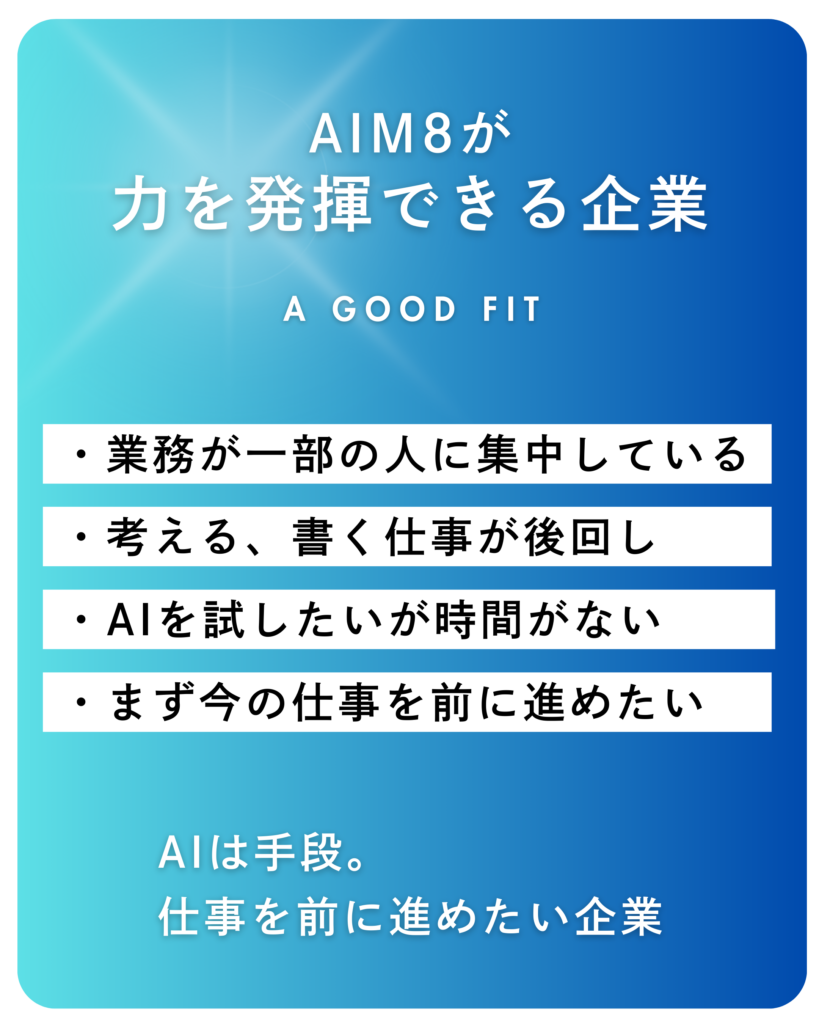 AIM8は、「業務を今すぐ進めるための選択肢」として