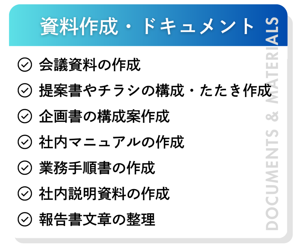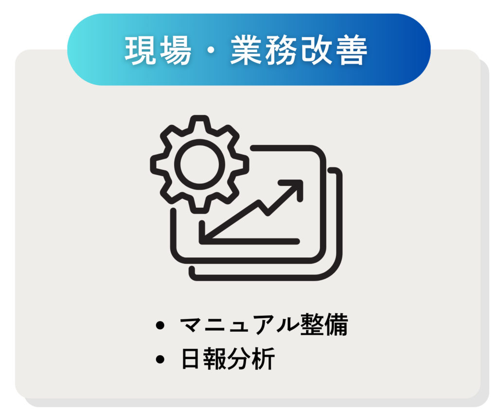 ・社内マニュアルや業務手順書を整備し、誰でも使える形にまとめた