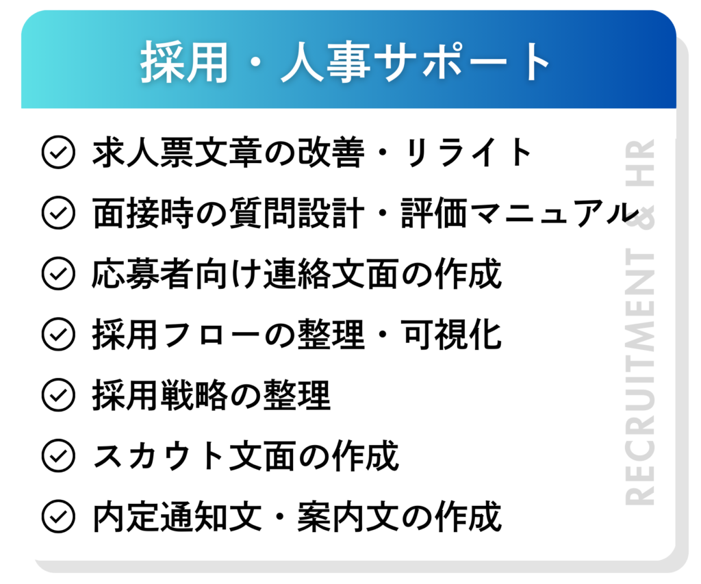 ・採用活動に関する求人原稿の作成やブラッシュアップをAI人材が担当
