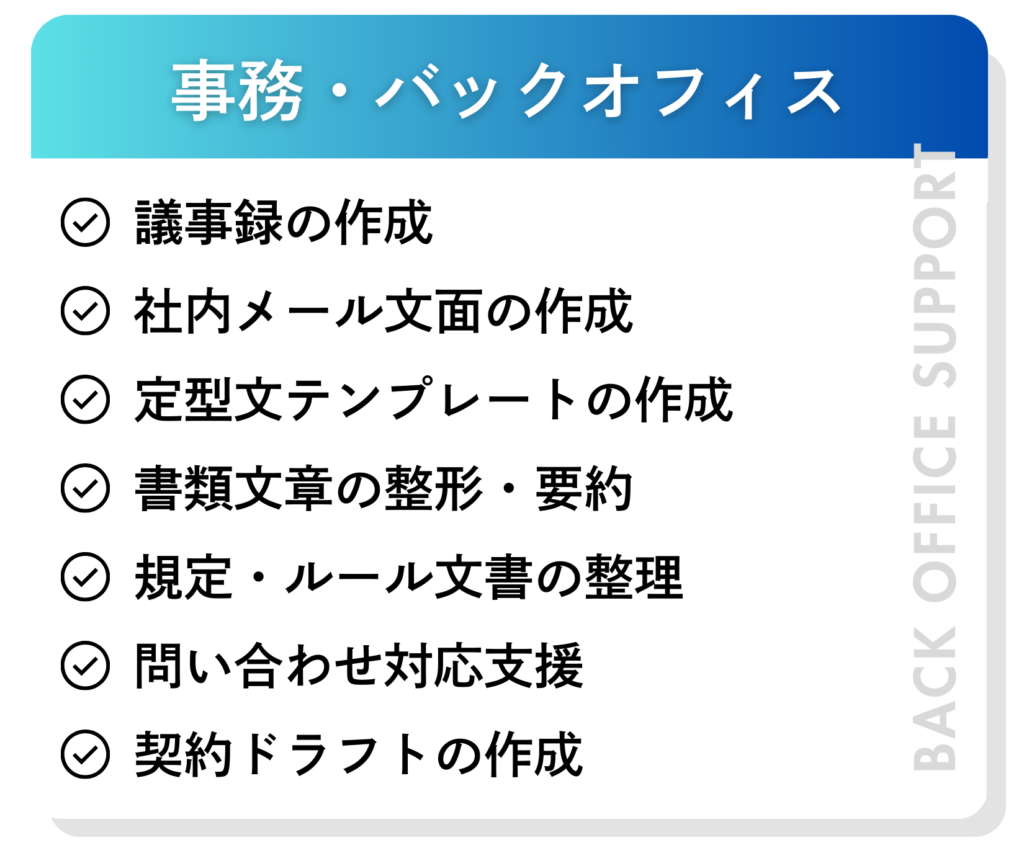 単に作業を切り出すのではなく、「AI × 人材」の力で業務の進め方そのものを最適化し、企業の生産性向上と持続的な業務改善につなげていきます。
